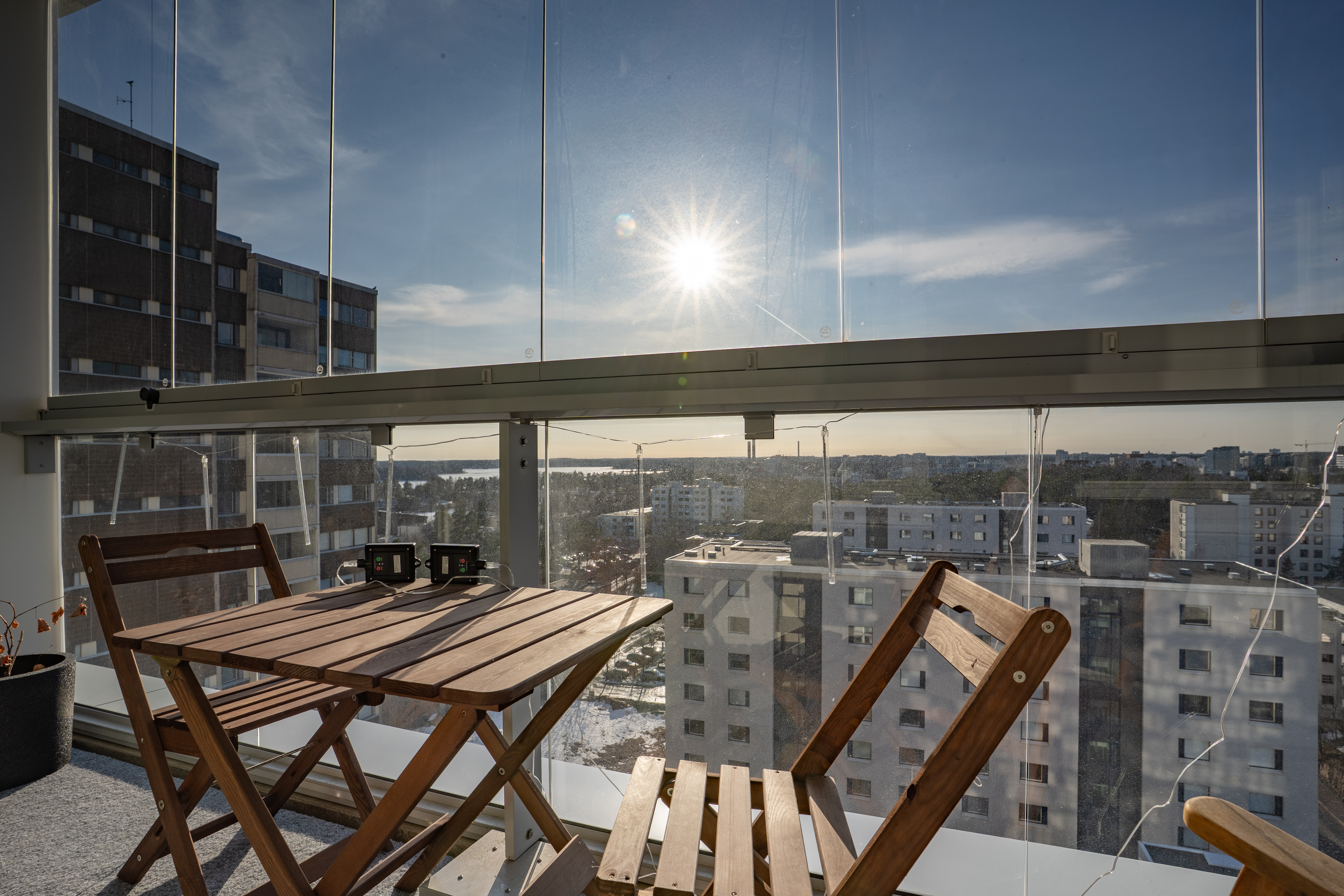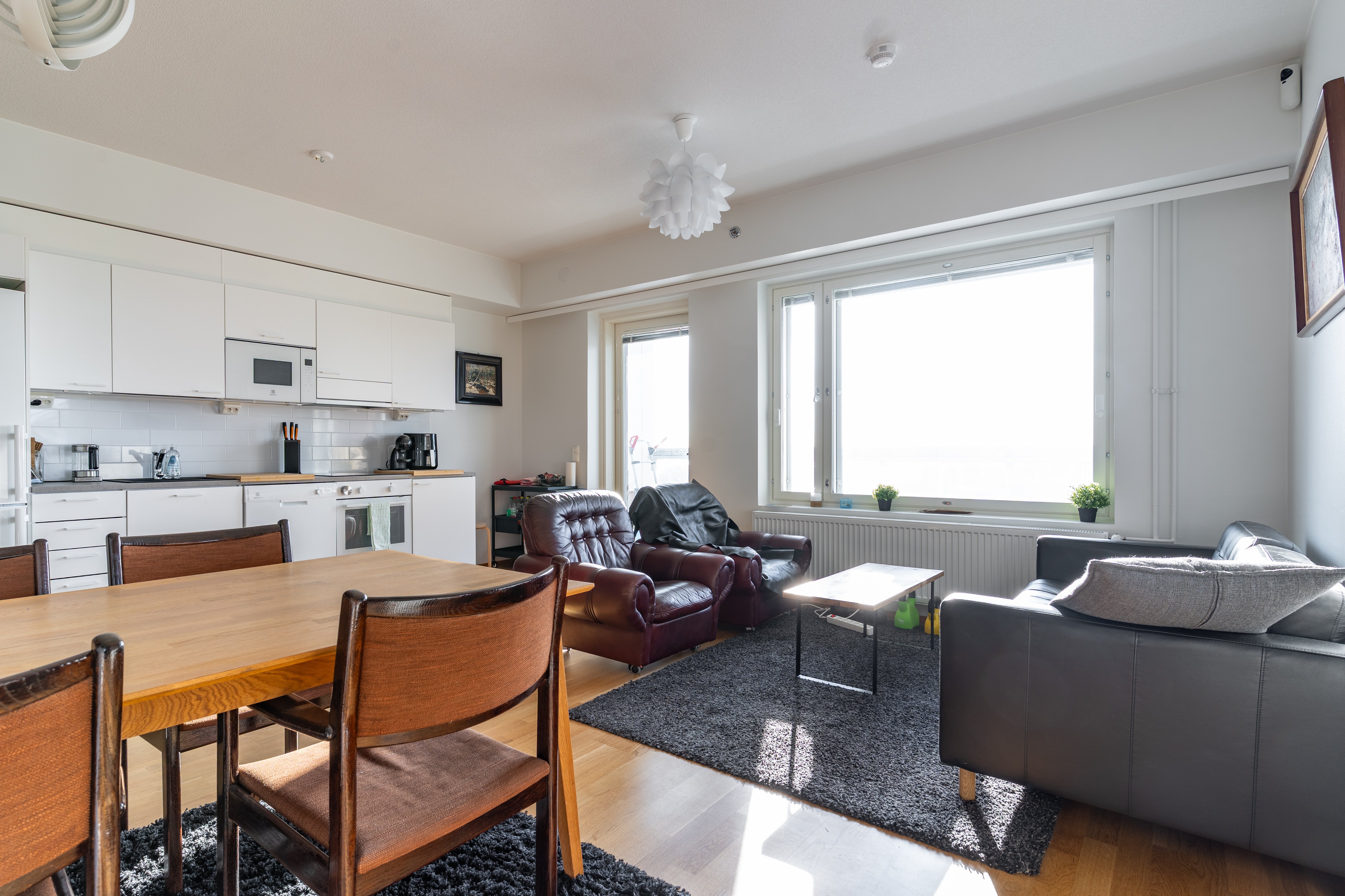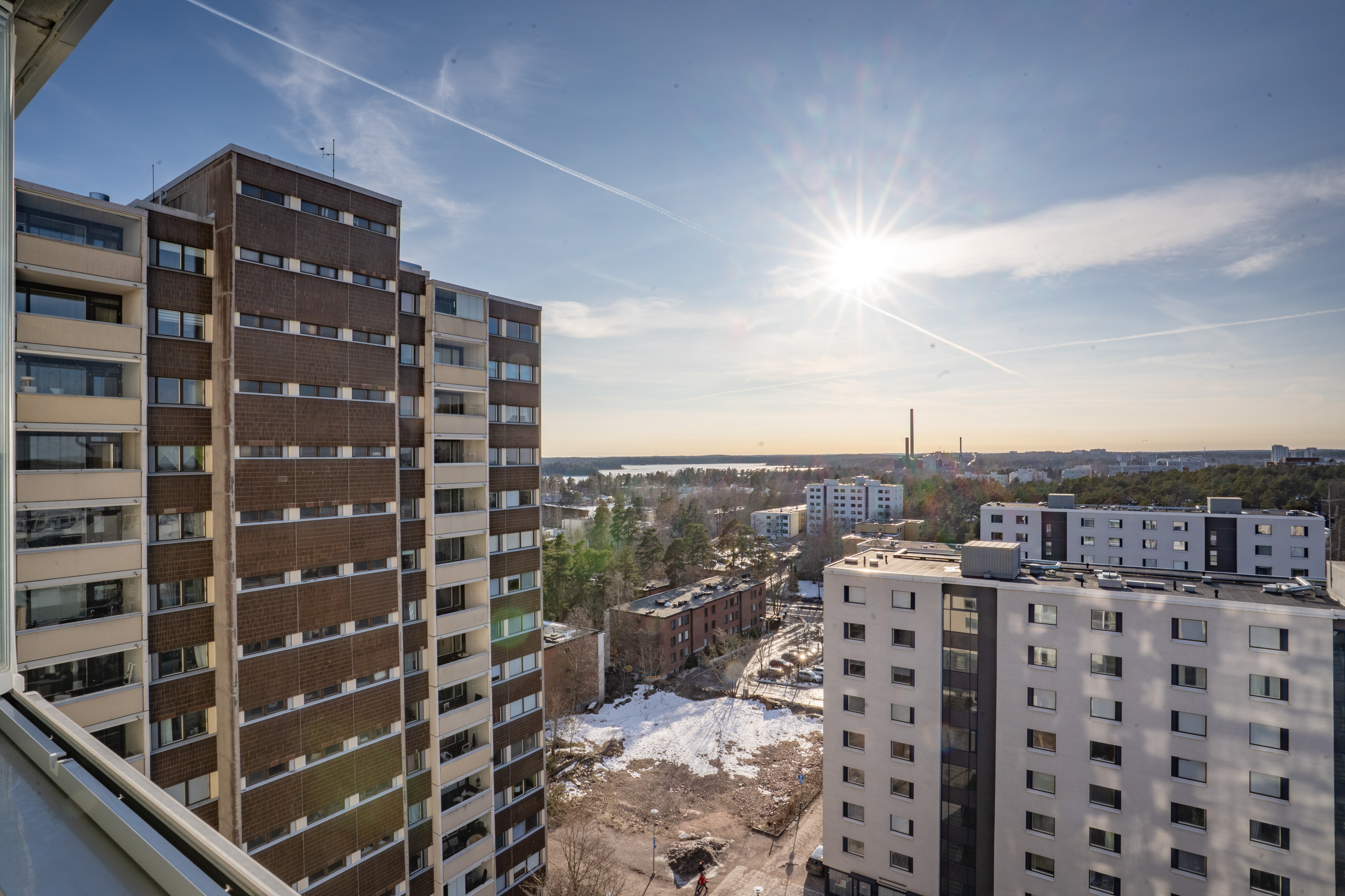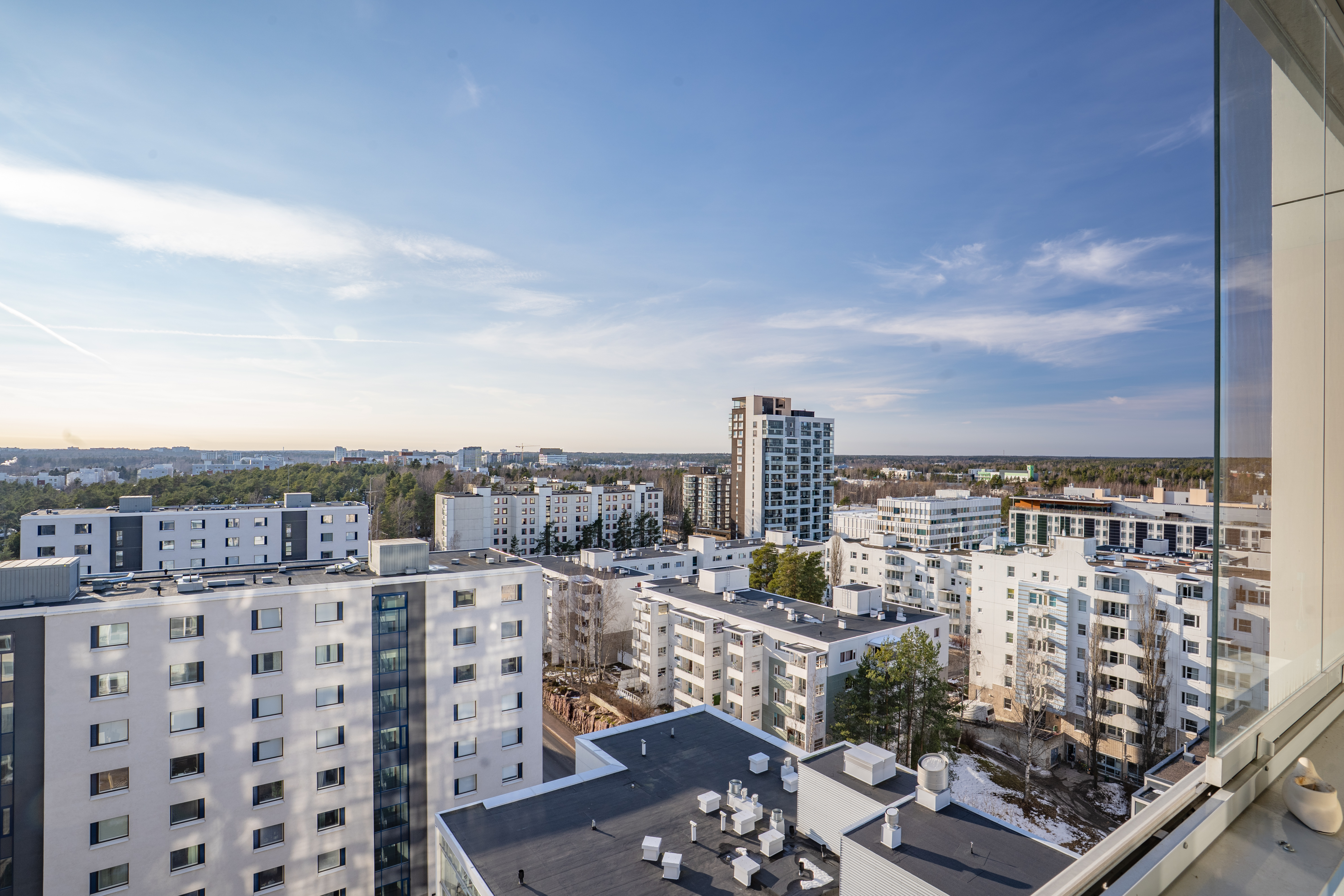 Comfortable high-floor 3-room apartment with great sea and forest views. Sunny balcony, top condition, well-equipped kitchen, spacious bathroom. Peaceful living with no noise. Just 250 meters from metro (20 min to Helsinki) and Espoo's best shopping center: 200+ shops, restaurants, cinema, services. Beach 1km away with charming seaside cafés. Great cycling and walking routes. Perfect blend of urban convenience, natural beauty, and tranquil comfort in prime Espoo location.