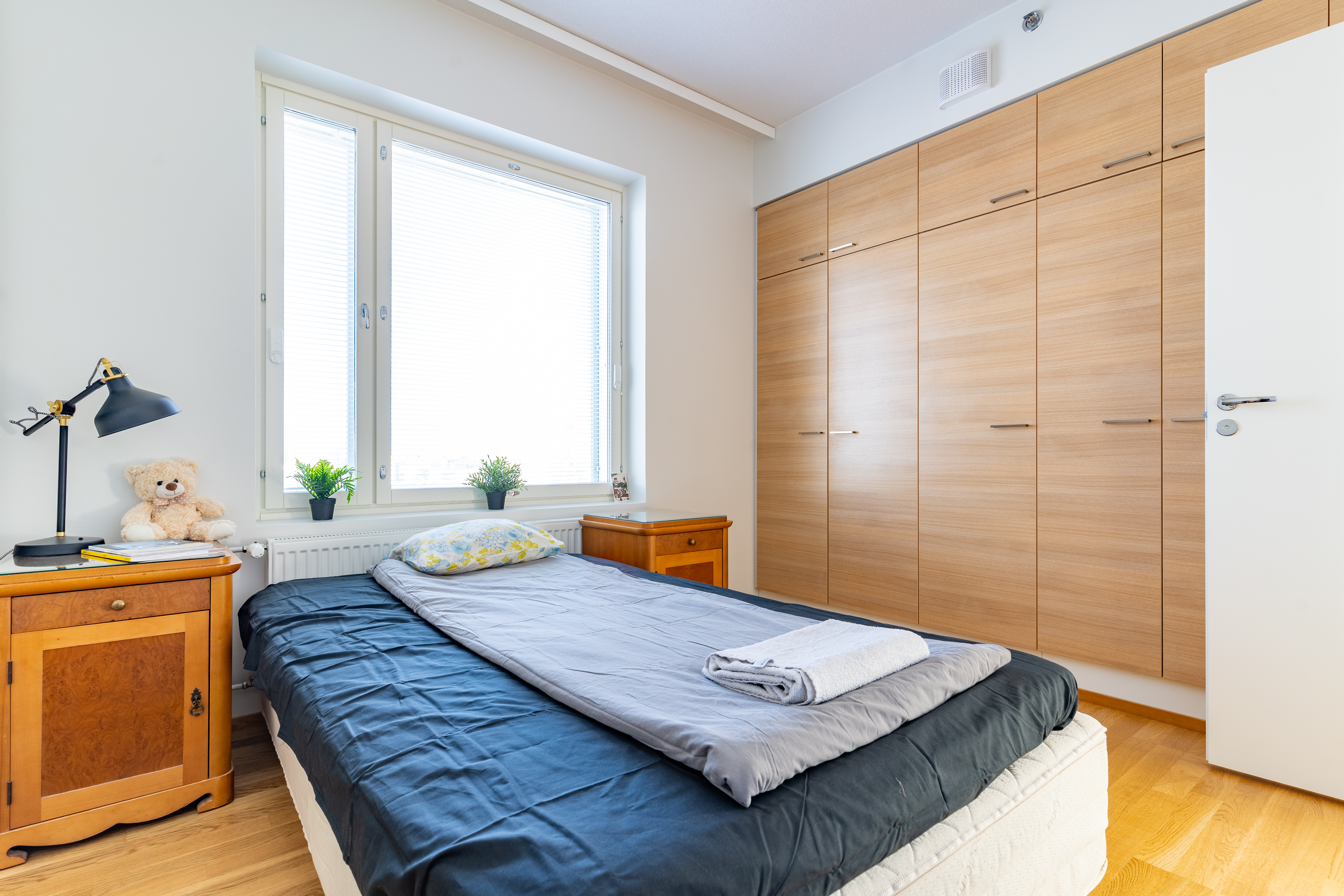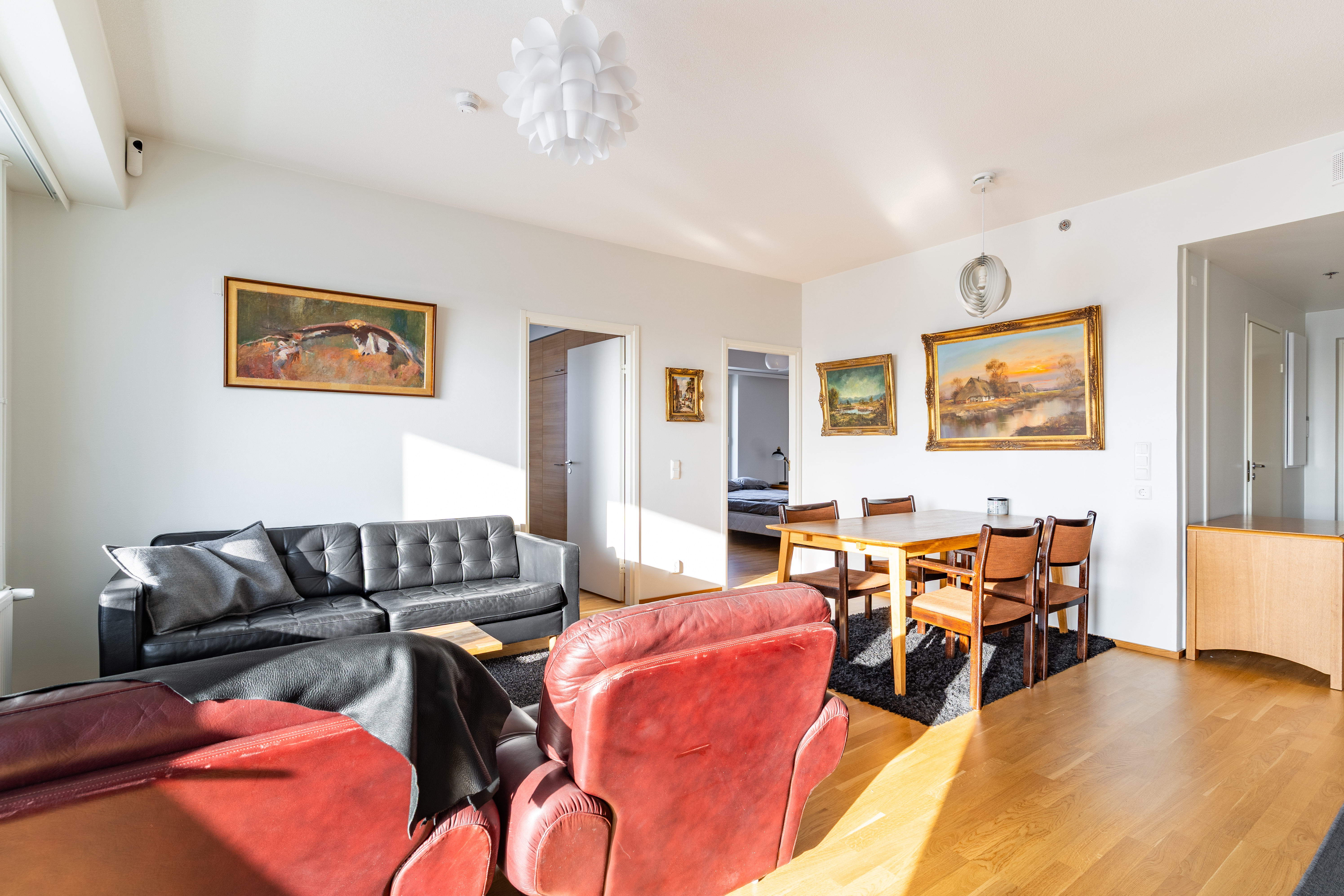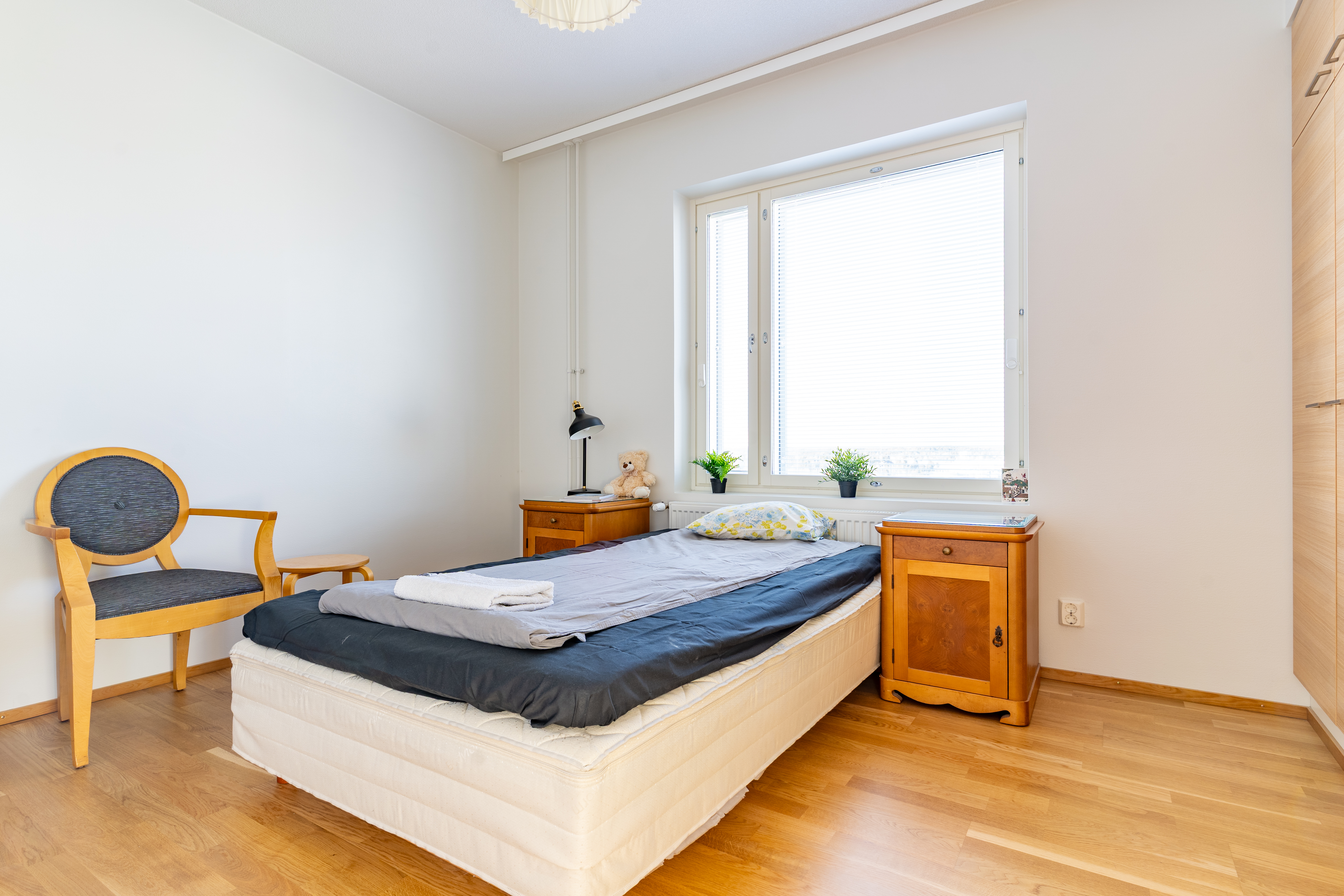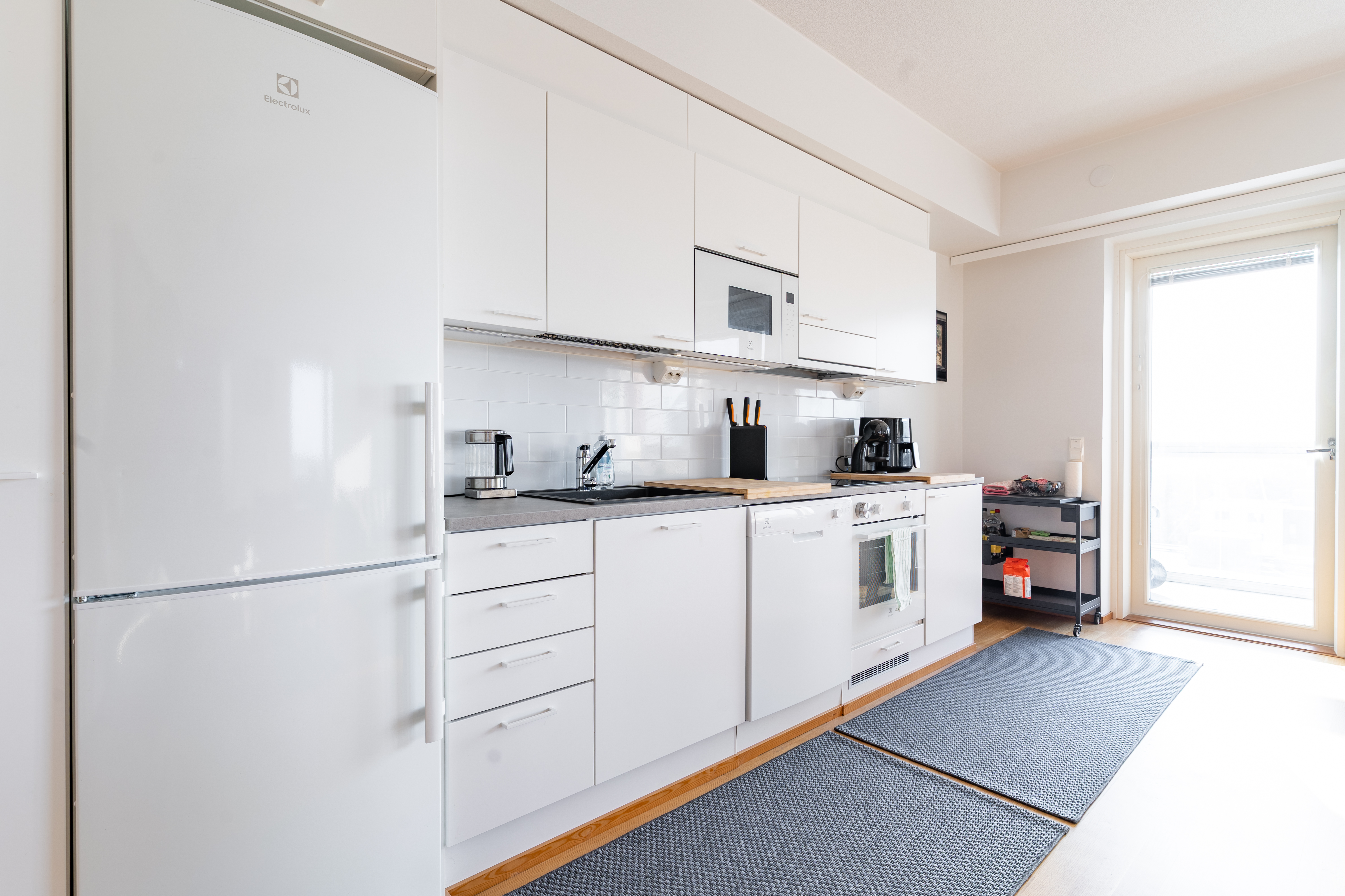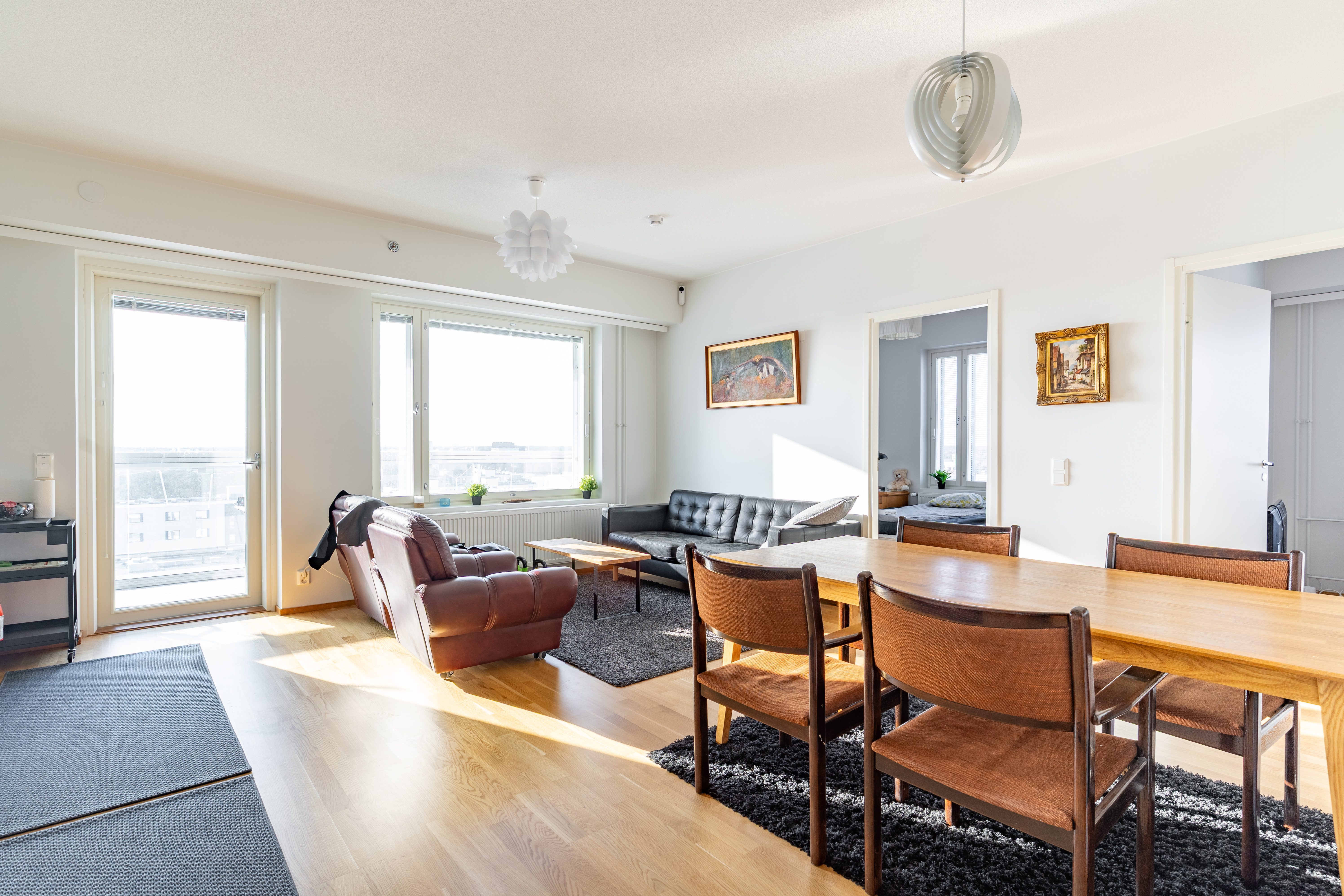 Comfortable high-floor 3-room apartment with great sea and forest views. Sunny balcony, top condition, well-equipped kitchen, spacious bathroom. Peaceful living with no noise. Just 250 meters from metro (20 min to Helsinki) and Espoo's best shopping center: 200+ shops, restaurants, cinema, services. Beach 1km away with charming seaside cafés. Great cycling and walking routes. Perfect blend of urban convenience, natural beauty, and tranquil comfort in prime Espoo location.