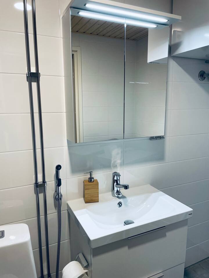 Keep it simple at this peaceful and centrally-located place. Great sea and forest views. Sunny balcony, immaculate condition, well-equipped kitchen, spacious bathroom. Peaceful living with no noise. Just 250m from metro (20 min to Helsinki) and Espoo's best shopping center: 200+ shops, restaurants, cinema, services. Beach 1km away with charming seaside cafés. Great cycling and walking routes. Perfect blend of urban convenience, natural beauty, and tranquil comfort in prime Espoo location.